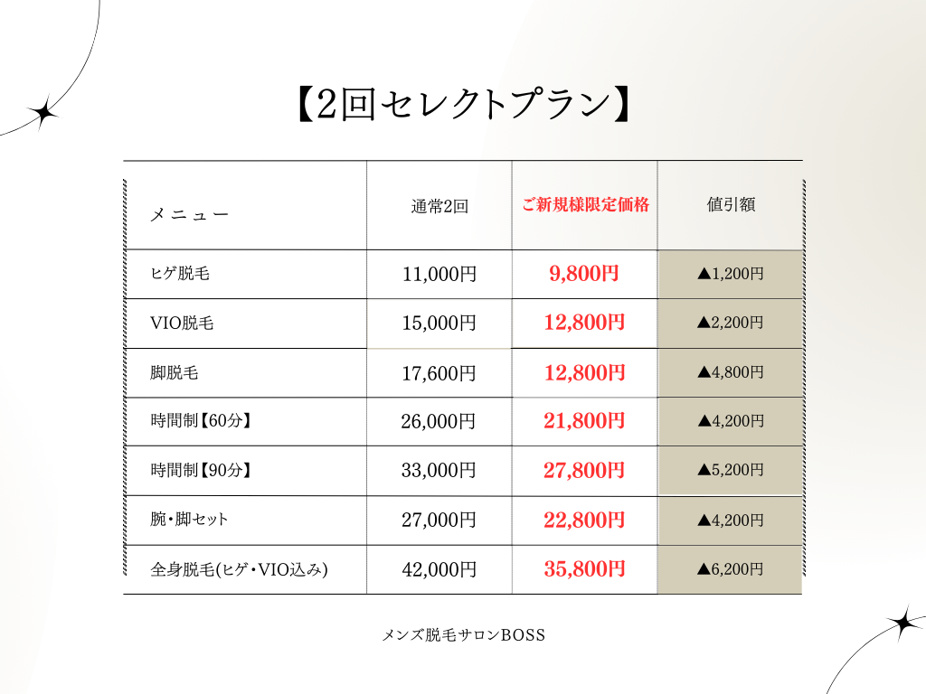 ※ご新規のお客様に限り有効(2回セレクトプランは全員対象)