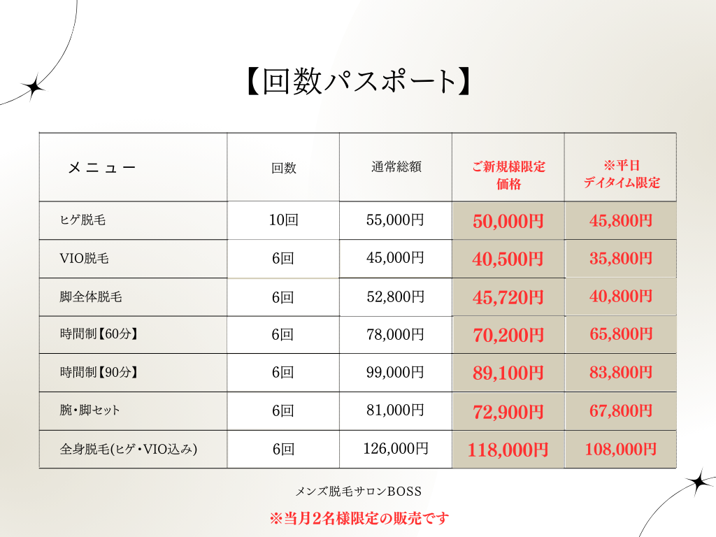 メンズ脱毛サロンBOSSの佐藤です。