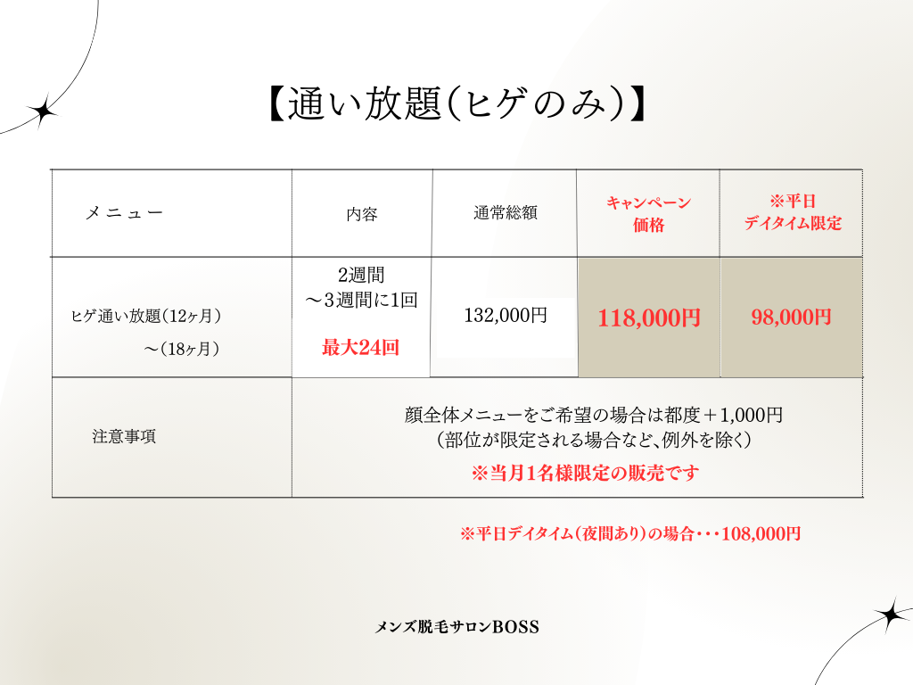〜1年間通い放題(ヒゲ)〜
